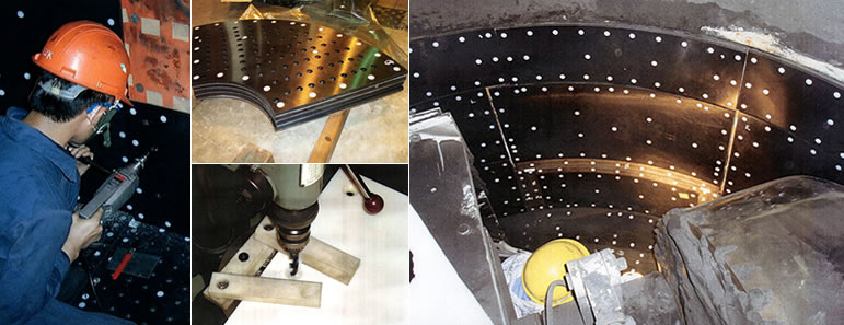 一方、大型混練機では従来通りSS材の金具を使用しておりますが、
